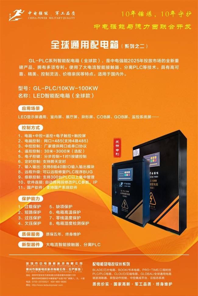 首度亮相的GL-PLC全球智能配电箱作为本次发布会的旗舰产品,凝聚了中电强能与德力西集团联合研发的技术精华。该系列创新性地采用大电流智能接触器与分离式PLC技术架构,功率覆盖10KW至100KW全范围,完美匹配从室内显示屏到户外监控系统的多样化应用场景。产品集成电脑控制、中控系统、远程遥控、电子触控等多元化控制方式,更突破性地支持多达300台设备的大规模级联控制,可为超大型项目提供完整的配电解决方案。其独特的远程程序升级与故障修复能力,配合对国产操作系统的全面兼容,更是实现智能配电与便捷运维的完美融合。